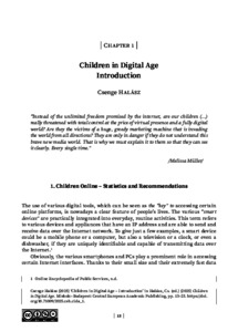 Halász, Csenge (2025) Children in Digital Age - Introduction. In: Children in digital age. Human Rights – Children’s Rights; International and Comparative Children’s Rights (6). Central European Academic Publishing, Miskolc, Budapest, pp. 13-23. ISBN 9786157027114, 978-615-7027-12-1, 978-615-7027-13-8