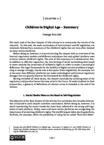 Halász, Csenge (2025) Children in Digital Age – Summary. In: Children in digital age. Human Rights – Children’s Rights; International and Comparative Children’s Rights (6). Central European Academic Publishing, Miskolc, Budapest, pp. 291-308. ISBN 9786157027114, 978-615-7027-12-1, 978-615-7027-13-8