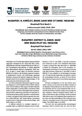 Hajdu, Barbara and Tóth, Farkas Márton (2020) Budapest, III. kerület, Ángel Sanz Briz út (hrsz. 19333/59) : Graphisoft Park South 1. = Budapest, District III, Ángel Sanz Briz Road (plot no. 19333/59) : Graphisoft Park South 1. ARCHEOBUDAPEST (15). ISSN 3094-1857