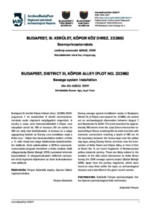 Fényes, Gabriella (2020) Budapest, III. kerület, Kőpor köz (hrsz. 22286) : Szennyvízcsatornázás = Budapest, District III, Kőpor Alley (plot no. 22286) : Sewage system installation. ARCHEOBUDAPEST (17). ISSN 3094-1857