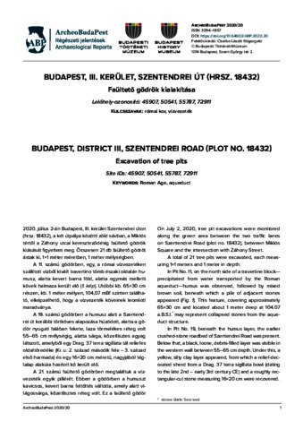 Fényes, Gabriella (2020) Budapest, III. kerület, Szentendrei út (hrsz. 18432) : Faültető gödrök kialakítása = Budapest, District III, Szentendrei Road (plot no. 18432) : Excavation of tree pits. ARCHEOBUDAPEST (20). ISSN 3094-1857