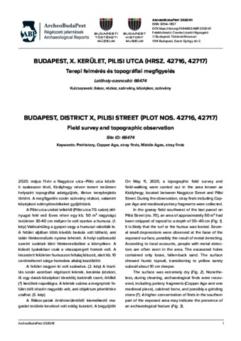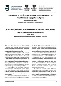 Gyenes, Gábor (2020) Budapest, X. kerület, Pilisi utca (hrsz. 42716, 42717) : Terepi felmérés és topográfiai megfigyelés = Budapest, District X, Pilisi Street (Plot Nos. 42716, 42717) : Field survey and topographic observation. ARCHEOBUDAPEST (61). ISSN 3094-1857