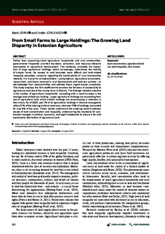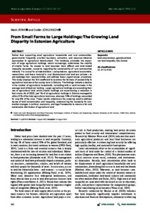 Marii, Järve and Evelin, Jürgenson (2025) From Small Farms to Large Holdings: The Growing Land Disparity in Estonian Agriculture. STUDIES IN AGRICULTURAL ECONOMICS, 127 (3). pp. 162-173. ISSN 1418-2106