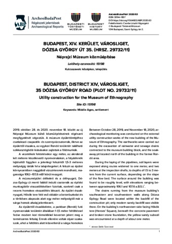Gyenes, Gábor (2020) Budapest, XIV. kerület, Városliget, Dózsa György út 35. (hrsz. 29732/11) : Néprajzi Múzeum közműépítése = Budapest, District XIV, Városliget, 35 Dózsa György Road (Plot No. 29732/11) : Utility construction for the Museum of Ethnography. ARCHEOBUDAPEST (63). ISSN 3094-1857