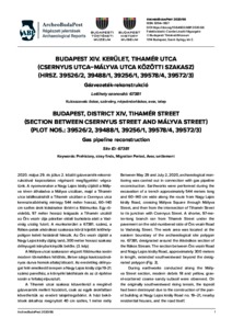 Gyenes, Gábor (2020) Budapest XIV. kerület, Tihamér utca (Csernyus utca–Mályva utca közötti szakasz) (hrsz. 39526/2, 39488/1, 39256/1, 39578/4, 39572/3) : Gázvezeték-rekonstrukció = Budapest, District XIV, Tihamér Street (Section between Csernyus Street and Mályva Street) (Plot Nos.: 39526/2, 39488/1, 39256/1, 39578/4, 39572/3) : Gas pipeline reconstruction. ARCHEOBUDAPEST (66). ISSN 3094-1857