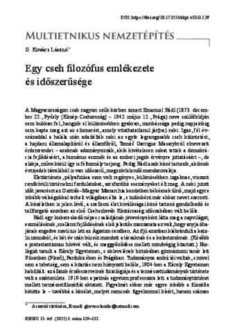 G. Kovács, László (2025) Egy cseh filozófus emlékezete és időszerűsége. REGIO: KISEBBSÉG KULTÚRA POLITIKA TÁRSADALOM, 33 (3). pp. 129-132. ISSN 0865-557X