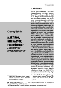 Csepregi, Zoltán (2024) Mártírok, hitehagyók, emigránsok: A gályarabperek evangélikus vádlottjai. SÁROSPATAKI FÜZETEK, 28 (4). pp. 13-22. ISSN 1416-9878