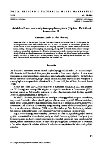 Kenyeres, Zoltán and Tóth, Sándor (2025) Adatok a Duna-mente csípőszúnyog-faunájának (Diptera: Culicidae) ismeretéhez II. FOLIA HISTORICO NATURALIA MUSEI MATRAENSIS, 49. pp. 83-100. ISSN 0134-1243