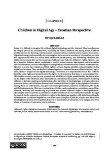 Lisičar, Hrvoje (2025) Children in Digital Age – Croatian Perspective. In: Children in digital age. Central European Academic Publishing, Miskolc, Budapest, pp. 105-128. ISBN 9786157027114