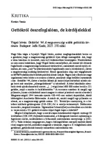 Kovács, Tamás (2025) Gettókról összefoglalóan, de kérdőjelekkel : Végső István: Gettóélet ’44. A magyarországi vidéki gettósítás története. Budapest: Jaffa Kiadó, 2025. 270 oldal. REGIO: KISEBBSÉG KULTÚRA POLITIKA TÁRSADALOM, 33 (3). pp. 186-192. ISSN 0865-557X