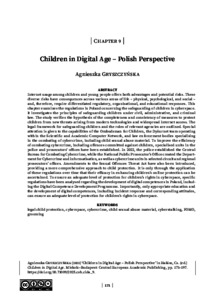 Internet usage among children and young people offers both advantages and potential risks. These diverse risks have consequences across various areas of life – physical, psychological, and social – and, therefore, require differentiated regulatory, organisational, and educational responses. This chapter examines the regulations in Poland concerning the safeguarding of children in cyberspace. It investigates the principles of safeguarding children under civil, administrative, and criminal law. The study verifies the hypothesis of the completeness and consistency of measures to protect children from new threats arising from modern technologies and widespread Internet access. The legal framework for safeguarding children and the roles of relevant agencies are outlined. Special attention is given to the capabilities of the Ombudsman for Children, the Dyżurnet team operating within the Scientific and Academic Computer Network, and law enforcement bodies specialising in the combating of cybercrime, including child sexual abuse material. To improve the efficiency of combating cybercrime, including offences committed against children, specialised units in the police and prosecutors’ offices have been established. In 2022, the police established the Central Bureau for Combating Cybercrime, while the National Public Prosecutor’s Office created the Department for Cybercrime and Informatisation, as well as cybercrime units in selected circuit and regional prosecutors’ offices. Amendments to the Sexual Offences Threat Act have also been introduced, providing a more comprehensive approach to child protection. It is only through the application of these regulations over time that their efficacy in enhancing children’s online protection can be ascertained. To ensure an adequate level of protection for children’s rights in cyberspace, specific regulations have been analysed regarding the development of digital competences in Poland, including the Digital Competence Development Programme. Importantly, only appropriate education and the development of digital competences, including incident response and corresponding attitudes, can ensure an adequate level of protection for children’s rights in cyberspace.