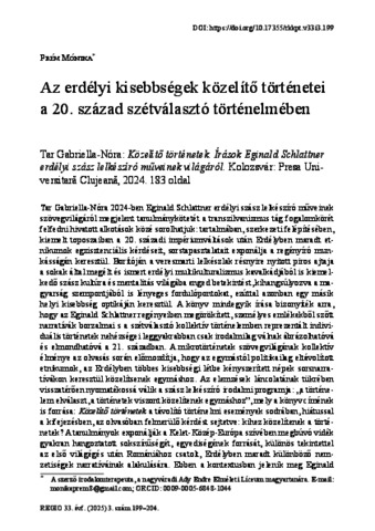 Prém, Mónika (2025) Az erdélyi kisebbségek közelítő történetei a 20. század szétválasztó történelmében : Tar Gabriella-Nóra: Közelítő történetek. Írások Eginald Schlattnererdélyi szász lelkészíró műveinek világáról. Kolozsvár: Presa Universitară Clujeană, 2024. 183 oldal. REGIO: KISEBBSÉG KULTÚRA POLITIKA TÁRSADALOM, 33 (3). pp. 199-204. ISSN 0865-557X