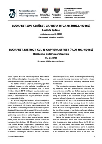 Gyenes, Gábor (2020) Budapest, XVI. kerület, Caprera utca 18. (hrsz. 119469) : Lakóház építése = Budapest, District XVI, 18 Caprera Street (Plot No. 119469) : Residential building construction. ARCHEOBUDAPEST (70). ISSN 3094-1857