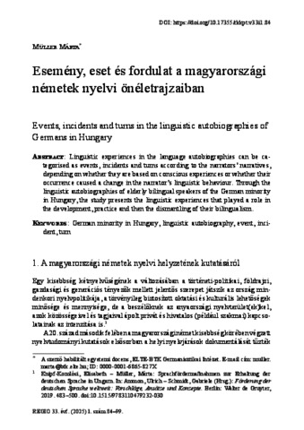 | Uncontrolled Keywords: | German minority in Hungary, linguistic autobiography, event, inci dent, turn |