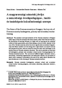 The members and representatives of the German minority in Hungary today expect from the minority education system, rather than from the families, the possibility of learning German at a high level, of passing on the minority culture to future generations, and of developing a sense of ethnic identity. In the case of the German minority, which has been significantly assimilated linguistically and whose numbers are declining, these expectations can only be met by well-prepared teachers, who are trained to meet the tasks and challenges in the various forms of German minority education. This article provides an overview of kindergarten, primary and secondary school teacher training programs for German minority teachers. The curricula of different higher education courses, internships, scholarship opportunities and admission statistics are presented in detail, and a summary is provided at the end of the study, which identifies the main weaknesses in the training of German minority teachers.