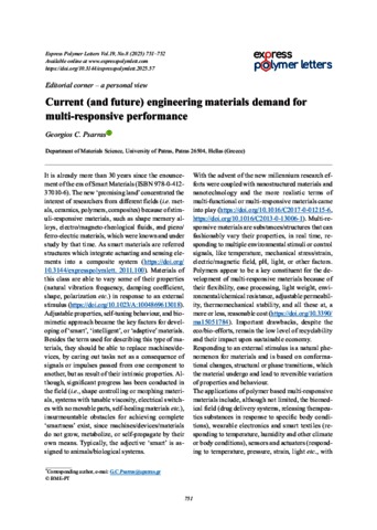 Psarras, Georgios C. (2025) Current (and future) engineering materials demand for multi-responsive performance. EXPRESS POLYMER LETTERS, 19 (8). pp. 751-752. ISSN 1788-618X