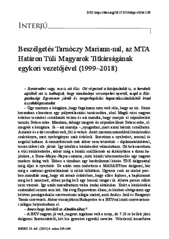 Tarnóczy, Mariann and Bárdi, Nándor (2025) Beszélgetés Tarnóczy Mariann-nal, az MTA Határon Túli Magyarok Titkárságának egykori vezetőjével (1999–2018). REGIO: KISEBBSÉG KULTÚRA POLITIKA TÁRSADALOM, 33 (4). pp. 239-249. ISSN 0865-557X