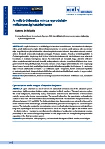 | Uncontrolled Keywords: | nyílt örökbeadás, krízisvárandósság, szocioökonómiai háttér, örökbeadó anya, társadalmi előítéletek |