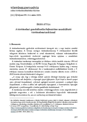 Érsek, Attila (2025) A történelmi gondolkodás fejlesztése munkáltató történelemtanítással. TÖRTÉNELEMTANÍTÁS: ONLINE TÖRTÉNELEMDIDAKTIKAI FOLYÓIRAT, 16 (3-4). pp. 207-244. ISSN 2061-6260