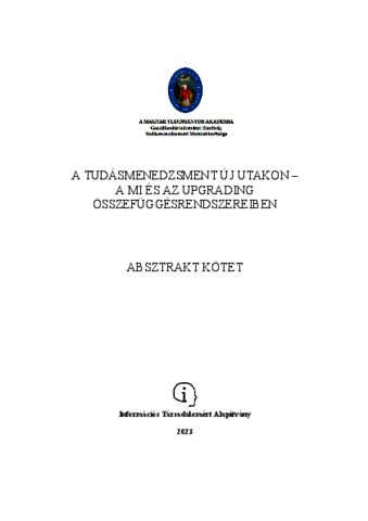 Kiss, Ferenc and Noszkay, Erzsébet and Obermayer, Nóra, eds. (2023) A tudásmenedzsment új utakon – a MI és az upgrading összefüggésrendszereiben. Információs Társadalomért Alapítvány, Budapest. ISBN 978-615-82082-5-3 (print); 978-615-82082-6-0 (pdf)
