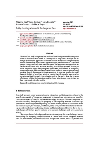 Gerő, Márton and Kovách, Imre and Kristóf, Luca and Szabó, Andrea and Hajdu, Gábor (2025) Testing the integration model: The Hungarian Case. INTERSECTIONS: EAST EUROPEAN JOURNAL OF SOCIETY AND POLITICS, 11 (2). pp. 205-225. ISSN 2416-089X