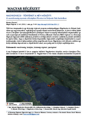 Kovács, Zoltán (2024) Nagykovácsi – Történet a név mögött: A vasművesség nyomai a középkori Kovácsi és Solymár falu határában. MAGYAR RÉGÉSZET, 13 (1). pp. 74-84. ISSN 2416-0288