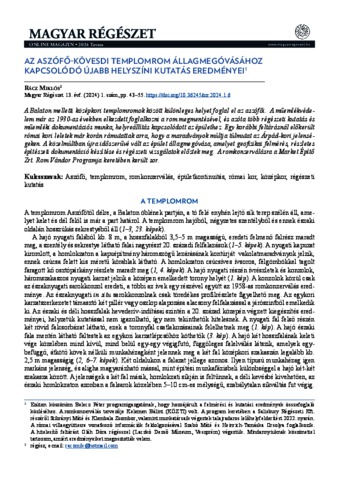 | Uncontrolled Keywords: | Aszófő, templomrom, romkonzerválás, épületkontinuitás, római kor, középkor, régészeti kutatás |