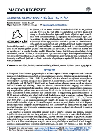 Kertész, Róbert and Szőke, Balázs (2024) A szolnoki oszmán palota régészeti kutatása. MAGYAR RÉGÉSZET, 13 (2). pp. 44-59. ISSN 24160288