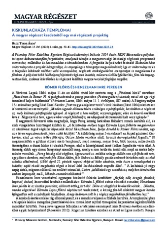 Rácz, Tibor Ákos (2025) Kiskunlacháza templomai : A magyar régészet kezdeteitől egy mai régészeti projektig. MAGYAR RÉGÉSZET, 14 (2). pp. 53-61. ISSN 2416-0288