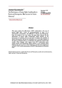 Kadribašić, Adnan (2017) The Effectiveness of Human Rights Conditionality in Bosnia and Herzegovina : What Lessons for Future Advocacy? INTERSECTIONS: EAST EUROPEAN JOURNAL OF SOCIETY AND POLITICS, 3 (2). pp. 33-51. ISSN 2416-089X