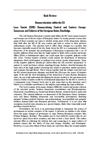 Ziegler, Dezső Tamás (2017) Democratization within the EU: Luca Tomini (2015) Democratizing Central and Eastern Europe. Successes and Failures of the European Union. Routledge. INTERSECTIONS: EAST EUROPEAN JOURNAL OF SOCIETY AND POLITICS, 3 (3). pp. 153-156. ISSN 2416-089X