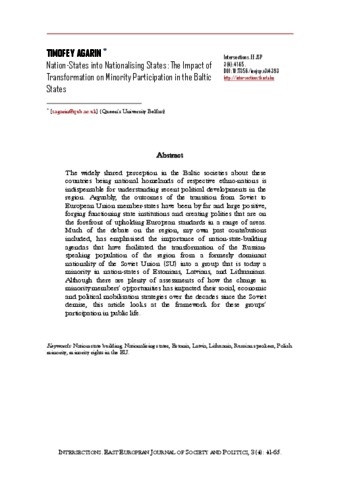 Agarin, Timofey (2017) Nation-States into Nationalising States. INTERSECTIONS: EAST EUROPEAN JOURNAL OF SOCIETY AND POLITICS, 3 (4). pp. 41-65. ISSN 2416-089X