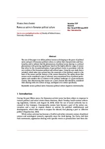 The aim of this paper is to define political memes as belonging to the genre of political satire and part of Romanian political culture, to outline their characteristics and functionality, and to indicate that the phenomenon of political meme-sharing is a cultural phenomenon with growing significance based on the highly affective usage of memes that allow for the recontextualization of past political events in accordance with the new realities of the Romanian political and cultural space. Using the case study that is included, which takes into account how the awareness of the political context is the basis of the memes and the features of the memes themselves, the author shows that memes can be considered a type of informal, non-conventional form of political participation and considers this in relation to the political landscape of a post-communist country, thus determining that memes are a novel element that should be considered when dealing with civic culture at large, and digital civic culture specifically.