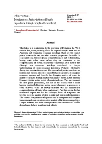 This paper is a contribution to the reception of Polányi in the West and the East, more precisely, about the impact Polányi’s views had on American and Hungarian economic sociology, which are the contact points between the two, and what research perspectives they offer. It concentrates on the perception of embeddedness and redistribution, leaving aside other views unless they are conducive to the comprehension of certain conceptual connections. It is argued that although new economic sociology contributed to deeper understanding of socio-economic processes, Polányi’s substantive theory also remained important. His approach of putting emphasis on political and cultural aspects of embeddedness enables us to compare economic systems and describe the diverging motives of actors in mixed economies. Polányi’s intellectual impact started in the sixties in Hungary, that is, in the period of market reforms. This may seem at the first glance paradoxical, but one of the reasons that it could happen was that Polányi was not an enemy of markets in general, as is often believed. What he heavily criticized was the uncontrolled commodification of land, labor, and money. Another reason for his intellectual impact was that the Polányian forms of integration did provide tools for analysis of state socialist and post-socialist processes. The current Hungarian developments can be interpreted in Polányian terms as regulatory attempts on the markets of fictitious commodities. I argue however, that these attempts under the conditions of double dependence do have significant side effects.