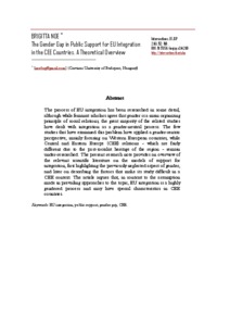 The process of EU integration has been researched in some detail, although while feminist scholars agree that gender is a main organizing principle of social relations, the great majority of the related studies have dealt with integration as a gender-neutral process. The few studies that have examined this problem have applied a gender-centric perspective, mainly focusing on Western European countries, while Central and Eastern Europe (CEE) relations – which are fairly different due to the post-socialist heritage of the region – remain under-researched. The present research note provides an overview of the relevant scientific literature on the models of support for integration, first highlighting the previously neglected aspect of gender, and later on describing the factors that make its study difficult in a CEE context. The article argues that, in contrast to the assumption made in prevailing approaches to the topic, EU integration is a highly gendered process and may have special characteristics in CEE countries.