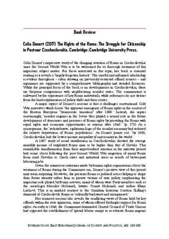 Guy, Will (2018) Celia Donert (2017) The Rights of the Roma: The Struggle for Citizenship in Postwar Czechoslovakia. Cambridge: Cambridge University Press. INTERSECTIONS: EAST EUROPEAN JOURNAL OF SOCIETY AND POLITICS, 4 (3). pp. 195-198. ISSN 2416-089X
