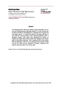 The following paper will discuss whether Pegida participants can be accused of having extreme right-wing attitudes or, on the contrary, the movement should be acknowledged as a legitimate form of protest by ‘concerned citizens’. To answer this question, the paper will refer to data collected at demonstrations and to general population polls. It transpires, despite other claims (also formulated by experts on Pegida), that Pegida demonstrators indeed lean sharply to the extreme right of the political spectrum. This is indicated both by the party’s electoral preferences (after all, a vast majority of the protesters would vote for the AfD) and the worldview of Pegida’s supporters that indicates their proximity to the extreme right.