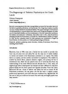 The Beginnings of Pediatric Psychiatry in the Czech Lands