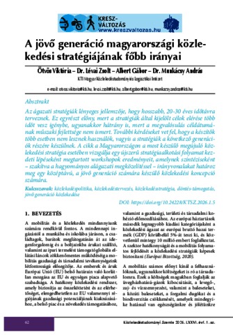 Ötvös, Viktória and Lévai, Zsolt and Albert, Gábor and Munkácsy, András (2026) A jövő generáció magyarországi közlekedési stratégiájának főbb irányai = Main directions of the Hungarian transport strategy for the next generation. KÖZLEKEDÉSTUDOMÁNYI SZEMLE, 76 (1). pp. 62-70. ISSN 0023-4362