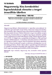 Magyarország földrajzi elhelyezkedésének és logisztikai potenciáljának köszönhetően egyre fontosabb szerepet tölt be a kínai áruk európai elosztásában. Jelen tanulmány célja a Magyarország és Kína közötti kereskedelmi és áruszállítási kapcsolatok elemzése, különös tekintettel a tengeri áruszállítás szerepére és hatásaira. Kutatásunkban azt vizsgáltuk, hogy hogyan alakultak a globális tengeri szállítmányozás elmúlt időszakának trendjei, különös figyelmet fordítva a COVID–19 világjárvány, a geopolitikai feszültségek és a Belt and Road Initiative (OBOR) hatásaira. A tanulmány statisztikai adatok és SWOT-elemzés segítségével értékeli a magyar–kínai kereskedelmi kapcsolatok alakulását, kiemelve a kínai beruházások szerepét az elektromos járműiparban és az akkumulátorgyártásban.Mindez választ adhat a regionális logisztikai hálózatokés a globális kereskedelmi dinamikák jobb megértéséhez, különös tekintettel akínai–magyar gazdasági együttműködés jövőbeli lehetőségeire. |Thanks to its geographical location and logistical potential, Hungary is playing an increasingly important role in the distribution of Chinese goods in Europe. The aim of this study is to analyse trade and freight transport relations between Hungary and China, with a particular focus on the role and impact of maritime freight transport. In our research, we examined the trends in global maritime transport in the recent period, paying particular attention to the effects of the COVID-19 pandemic, geopolitical tensions, and the Belt and Road Initiative (OBOR). The study uses statistical data and SWOT analysis to evaluate the development of Hungarian-Chinese trade relations, highlighting the role of Chinese investments in the electric vehicle industry and battery manufacturing. This can provide answers for a better understanding of regional logistics networks and global trade dynamics, with a particular focus on the future prospects of Chinese-Hungarian economic cooperation.
