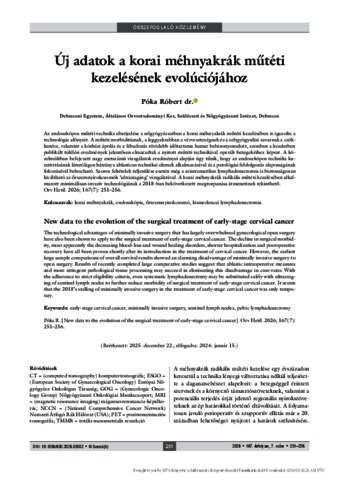 Póka, Róbert (2026) Új adatok a korai méhnyakrák műtéti kezelésének evolúciójához = New data to the evolution of the surgical treatment of early-stage cervical cancer. ORVOSI HETILAP, 167 (7). pp. 251-256. ISSN 0030-6002