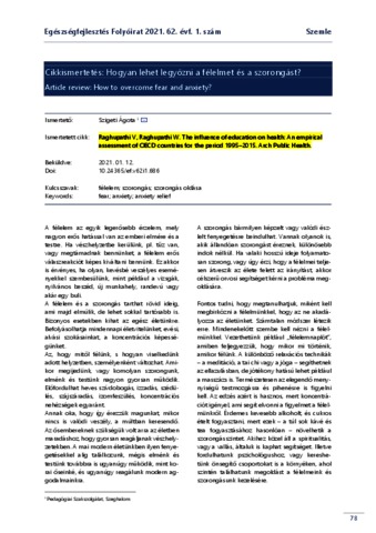 Szigeti, Ágota (2021) Cikkismertetés: Hogyan lehet legyőzni a félelmet és a szorongást? EGÉSZSÉGFEJLESZTÉS, 62 (1). pp. 78-79. ISSN 1786-2434 (nyomtatott); 2498-6666 (elektronikus)