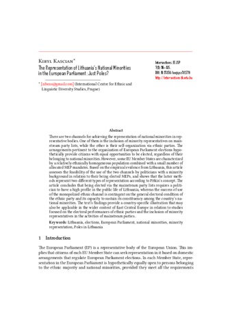 Kascian, Kiryl (2021) The Representation of Lithuania’s National Minorities in the European Parliament: Just Poles? INTERSECTIONS: EAST EUROPEAN JOURNAL OF SOCIETY AND POLITICS, 7 (1). pp. 116-135. ISSN 2416-089X