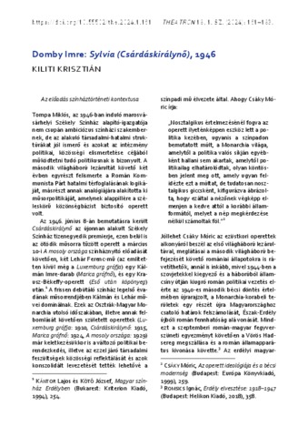 Kiliti, Krisztián (2024) Domby Imre: Sylvia (Csárdáskirálynő), 1946. THEATRON: SZÍNHÁZTUDOMÁNYI PERIODIKA, 18 (1). pp. 161-183. ISSN 1418-9941