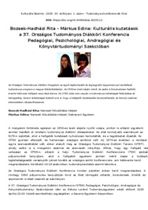 Bozsek-Hadházi, Rita and Márkus, Edina (2025) Kulturális kutatások a 37. Országos Tudományos Diákköri Konferencia Pedagógiai, Pszichológiai, Andragógiai és Könyvtártudományi Szekcióban. KULTURÁLIS SZEMLE, 12 (1). pp. 151-152. ISSN 2416-2329