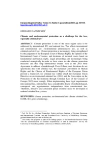 Gerhard, Dannecker (2025) Climate and environmental protection as a challenge for the law, especially criminal law. EUROPEAN INTEGRATION STUDIES, 21 (1 spec). pp. 465-510. ISSN 1588-6735
