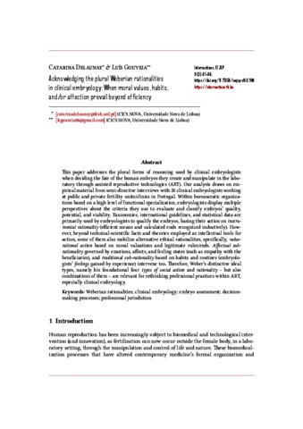 Delaunay, Catarina and Gouveia, Luís (2023) Acknowledging the plural Weberian rationalities in clinical embryology: When moral values, habits, and/or affection prevail beyond efficiency. INTERSECTIONS: EAST EUROPEAN JOURNAL OF SOCIETY AND POLITICS, 9 (3). pp. 61-86. ISSN 2416-089X