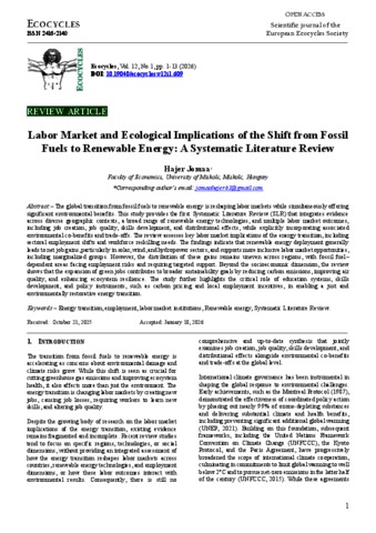 Hajer, Jomaa (2026) Labor Market and Ecological Implications of the Shift from Fossil Fuels to Renewable Energy: A Systematic Literature Review. ECOCYCLES, 12 (1). pp. 1-13. ISSN 2416-2140