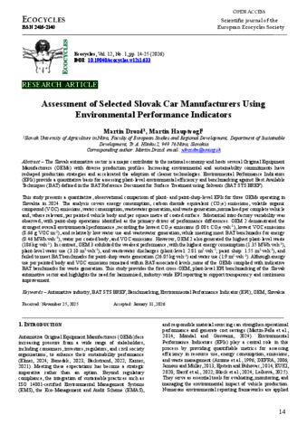 Drozd, Martin and Hauptvogl, Martin (2026) Assessment of Selected Slovak Car Manufacturers Using Environmental Performance Indicators. ECOCYCLES, 12 (1). pp. 14-25. ISSN 2416-2140