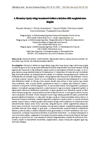 Halász, Gergely and Ferencz-Havel, Alexandra and Saláta, Dénes and Káposzta, József and Kurcz, Kristián and Tormáné Kovács, Eszter (2025) A Börzsöny–Ipoly-völgy természeti értékei a helyben élők megkérdezése alapján = The natural values of the Börzsöny-Ipoly Valley based on a survey of local residents. TÁJÖKOLÓGIAI LAPOK / JOURNAL OF LANDSCAPE ECOLOGY, 23 (2). pp. 20-53. ISSN 1589-4673